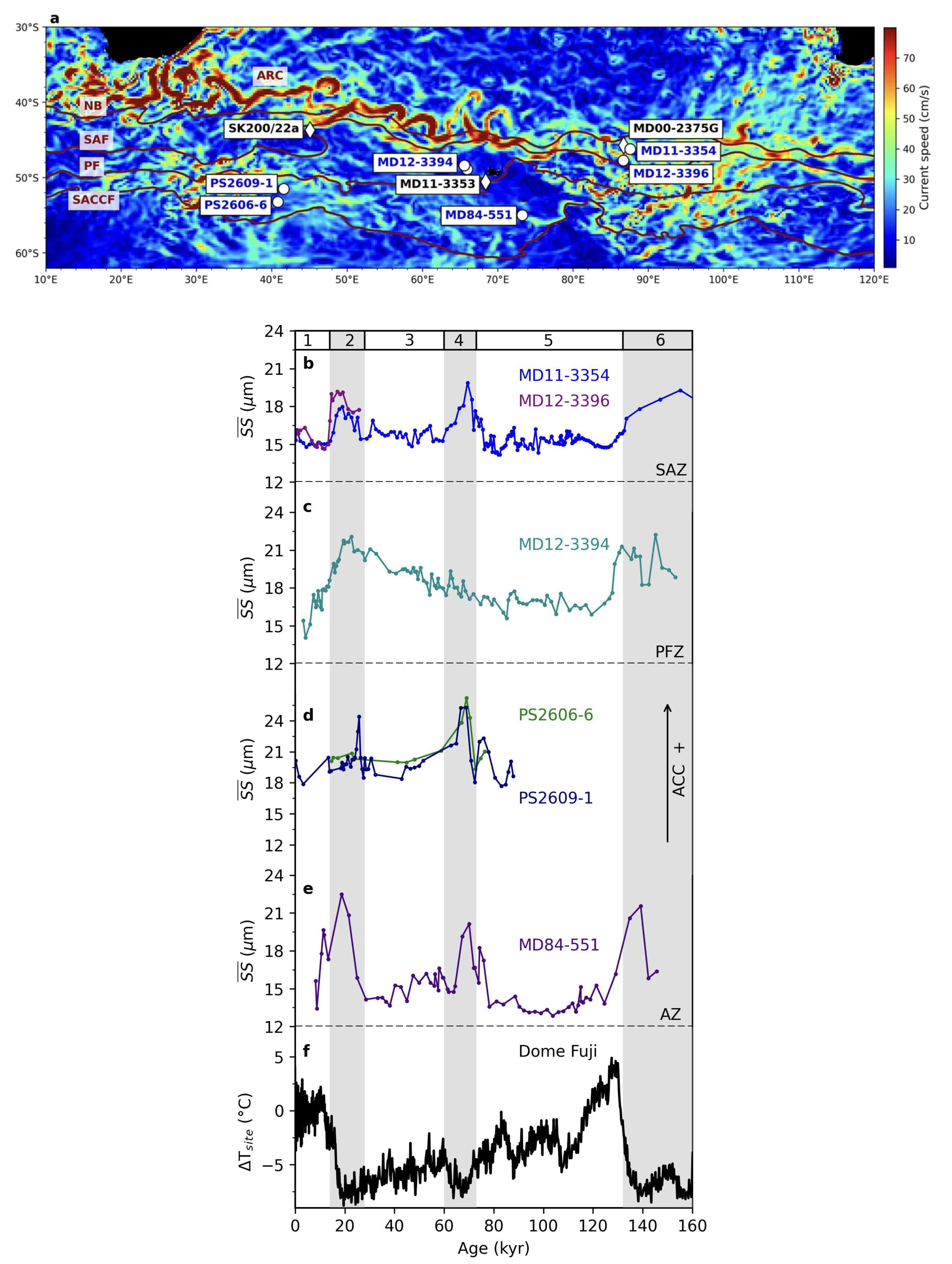 Wu, S et al. Zonally asymmetric changes in the Antarctic Circumpolar Current strength over the past million years. Nature Geoscience (2026). https://www.nature.com/articles/s41561-025-01901-2.