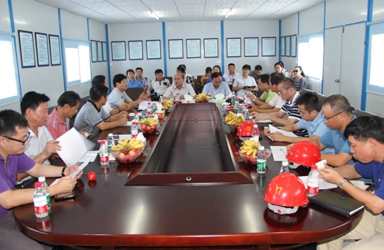 戴琼兴代表我所对重点项目视察组前来项目施工现场指导工作表示欢迎 ,并详细介绍了科研园区、生活园区和科研码头的基建进展情况,提请视察组在生活园区报建审批及水电、城市建设配套费减免、科研码头立项三项问题上给予帮助,协调解决。