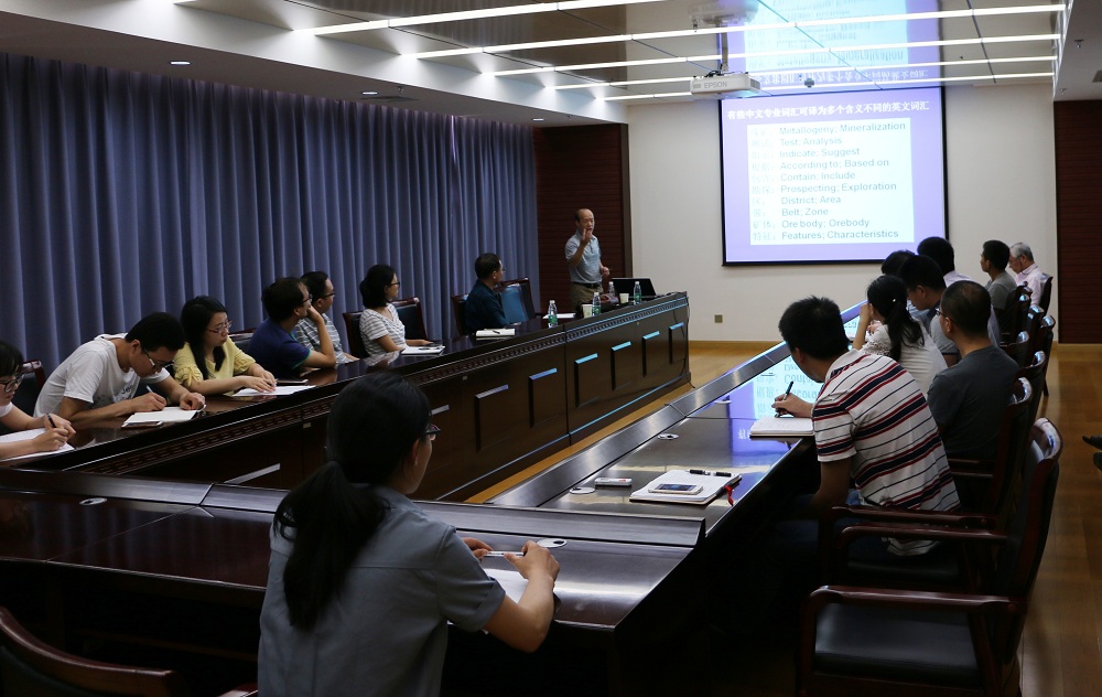 报告中,池国祥教授系统地从结构及格式问题、语法和用词问题、投稿注意事项等几个方面分步介绍了英文地质论文写作中应该注意和避免的错误。薛春纪教授向大家展示了与池国祥教授合作研究的金顶铅锌矿样品的岩相学和矿相学显微照片,其矿石的“菌斑”结构十分明显;同时还展示了金顶铅锌矿中硫化物的硫同位素特征,结果表明其成矿硫源大部分从细菌还原沉积硫酸盐而来。BSR(微生物硫酸盐还原作用)在金顶铅锌矿的成矿过程中起了关键作用。薛教授和池教授将会与本研究组开展后续的合作研究,以进一步验证金顶铅锌矿中含H2S包裹体的成因。