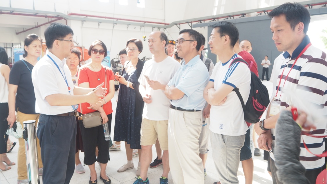参观工程实验室过程中,张海龙介绍了“海翼”号深海滑翔机、“天涯”号深渊着陆器、深海超高压环境模拟试验装置以及钴结壳采样机等设备。而后,代亮详细介绍了“深海勇士”号4500米载人潜水器的各项性能并着重强调其国产化率达95%。