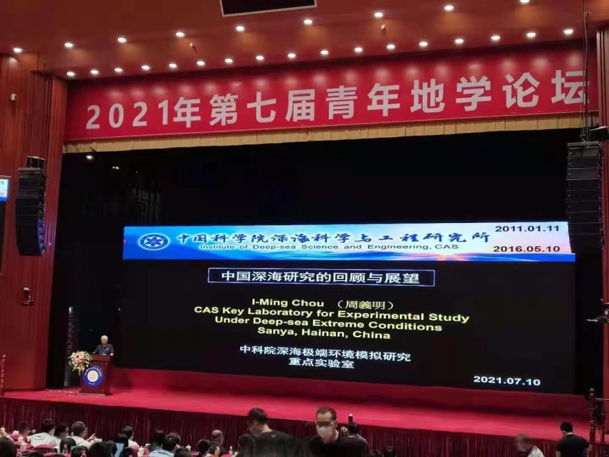7月9-11日,中科院深海所深海极端环境模拟研究实验室主任周义明研究员赴贵阳参加第七届青年地学论坛,并受邀作题为“中国深海研究的回顾与展望”的大会报告。报告中,周义明讲解了自己如何从台湾到美国工作三十余年退休后再到中科院深海所所的求学、科研历程。周义明向与会青年地球科学工作者介绍了深海所和深海极端环境研究实验室的建立和现状,也分享了自己一路见证中国在深海和外太空研究领域技术性的突破的珍贵经历。